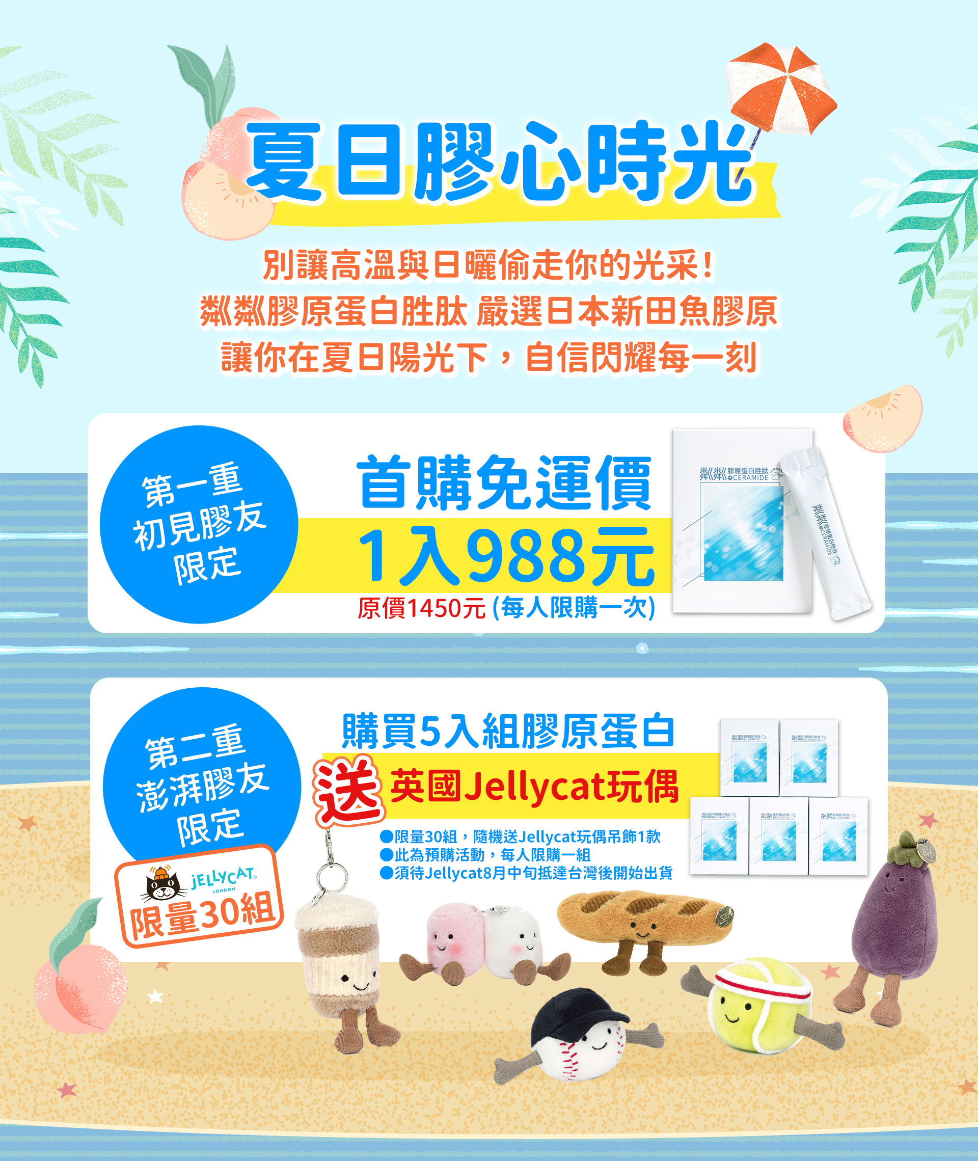 ▸下單粼粼膠原蛋白胜肽5入組送Jellycat玩偶吊飾(限量30組)